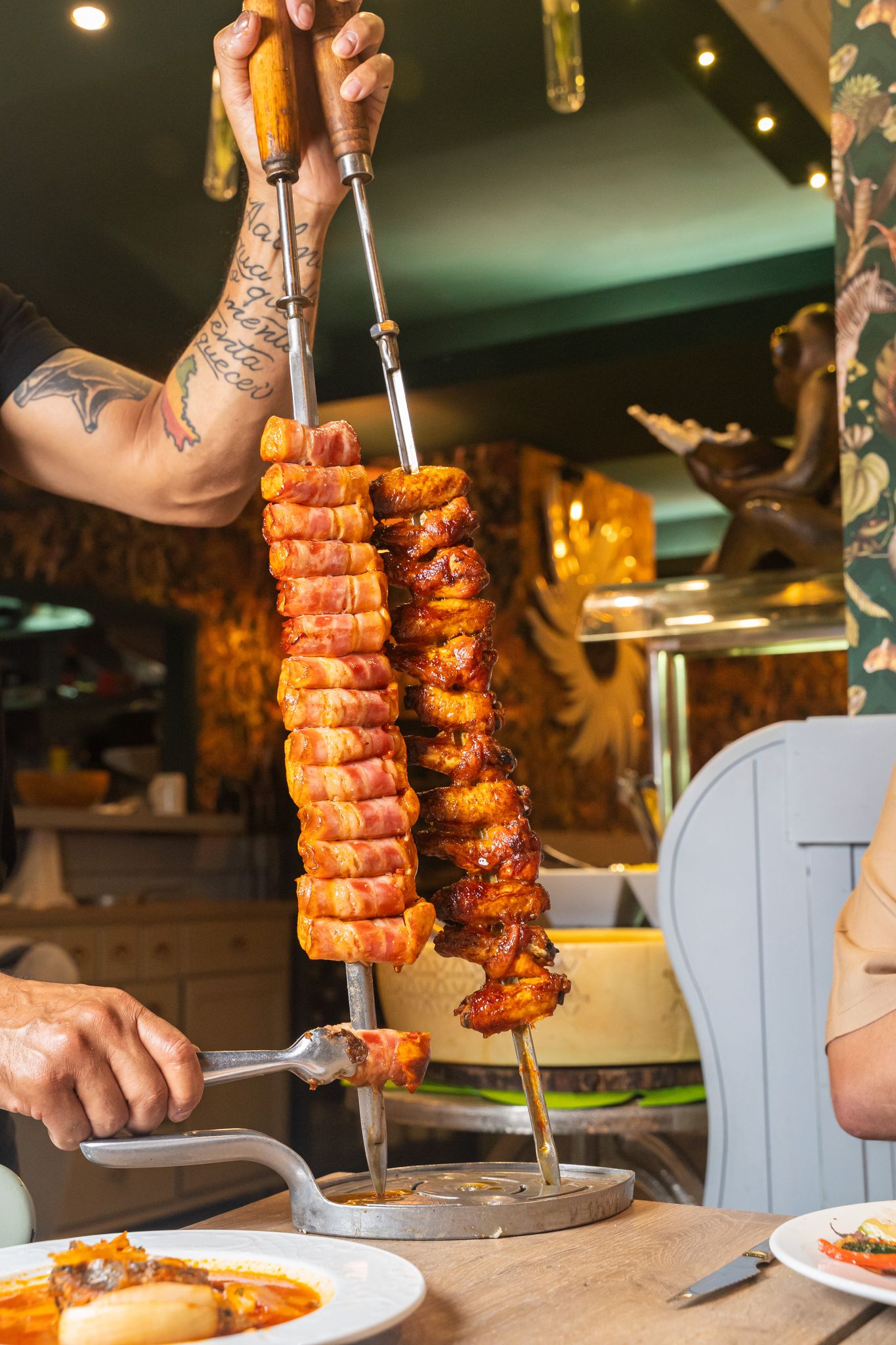 Nuestro restaurante ofrece una experiencia gastronómica única con buffet libre y rodizio de carnes de primera calidad. Disfruta de una gran variedad de entrantes y acompañantes en un ambiente exótico, diseñado en un ambiente natural. Nuestra especialidad son las carnes asadas y el rodizio, donde podrás saborear los mejores cortes.